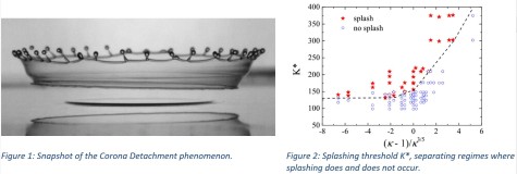 A large range of parameters of drop impact has been covered by variation of drop size, film thickness, impact velocity as well as fluid combination and investigated regarding the phenomena of drop impact. In this scope a new splashing subcategory, namely “corona detachment”, has been discovered and described. Furthermore, a theoretical model to predict the temporal evolution of the Corona in cases of both, horizontal and inclined drop impact, could be developed based on the experimental data. In addition, a model for the dimensionless K* number is introduced in order to determine the splashing threshold.